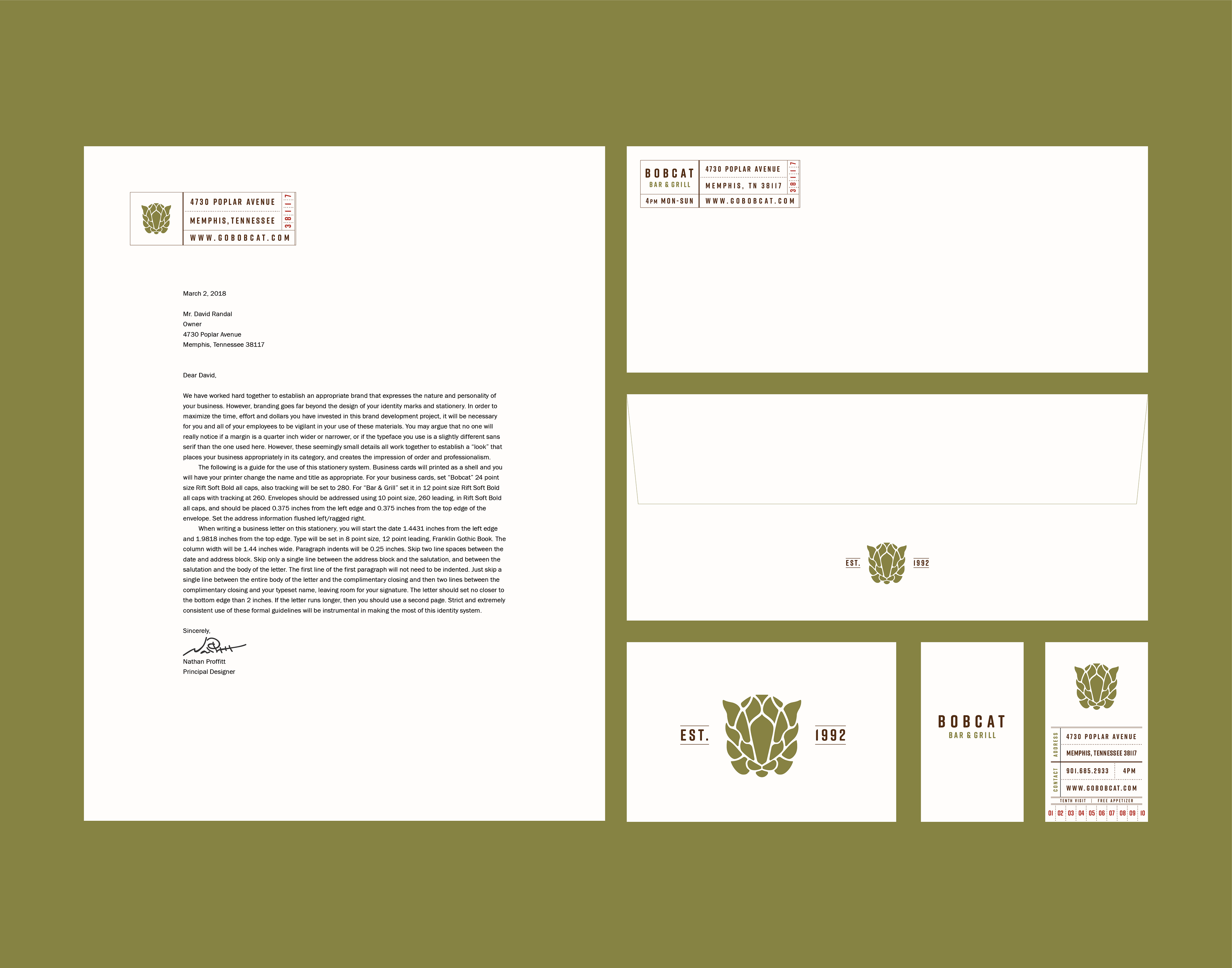 Bobcat Bar and Grill is a small hometown bar in Memphis,Tennessee. The purpose of this project was to bring a complete refresh to the logo and branding system.